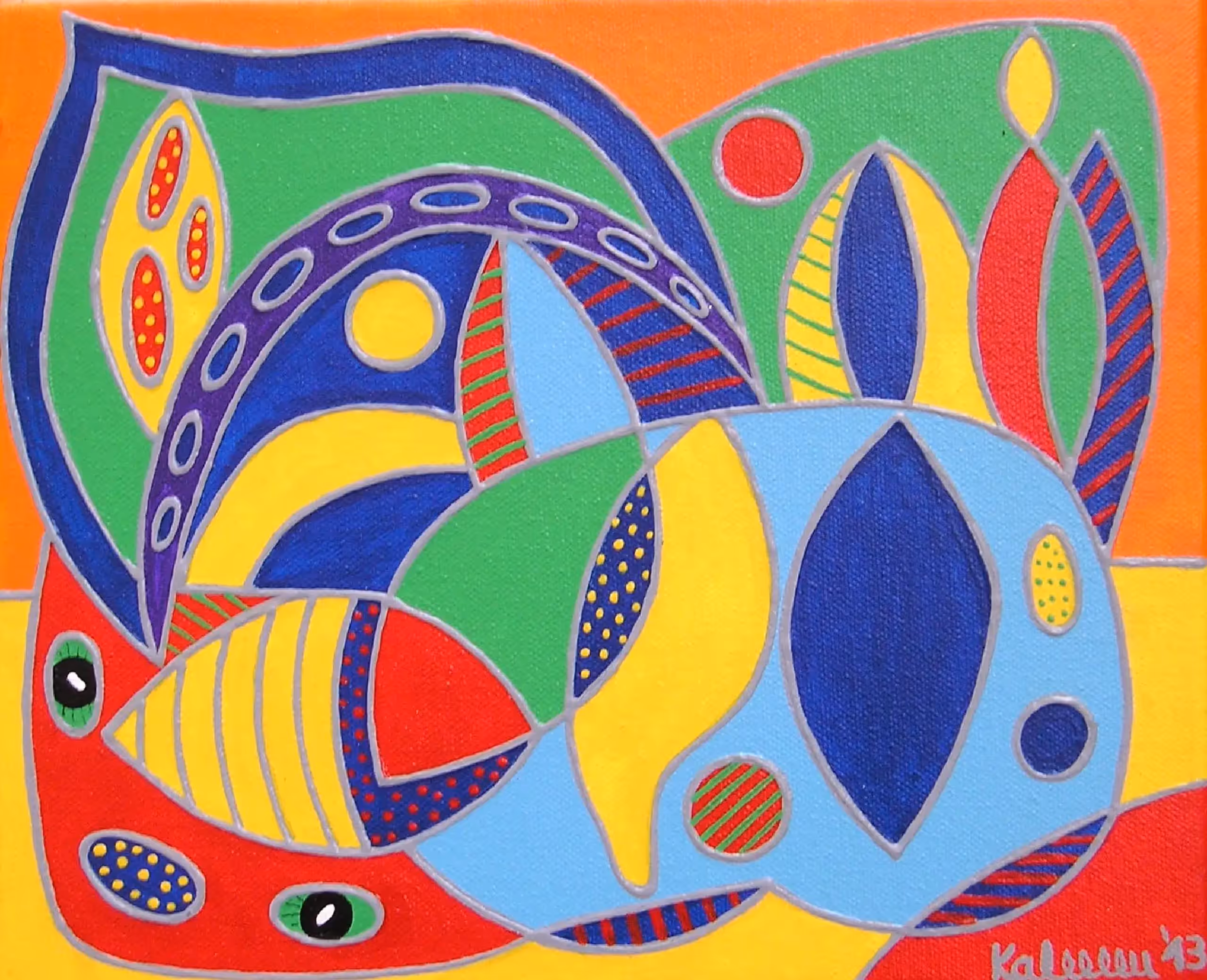 Gordon Sizelove is a painter who uses geometric forms and vivid colors to express universal themes.